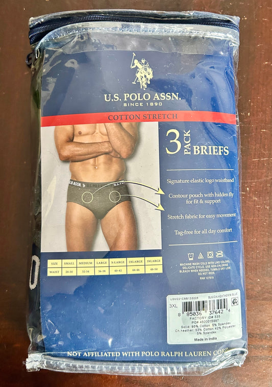 U.S. Polo Assn. Men's Cotton Stretch Briefs, Size-3XL, 3-Pack 37642
