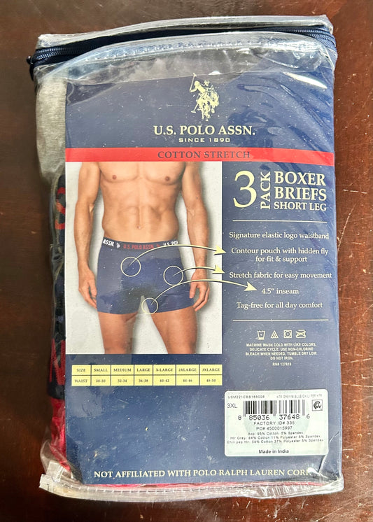 U.S. Polo Assn. Men's Cotton Stretch Mid Leg Boxer Briefs Underwear, Size-3XL 3 Pack 37648