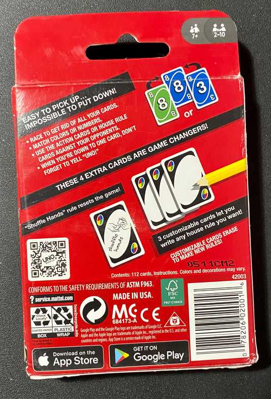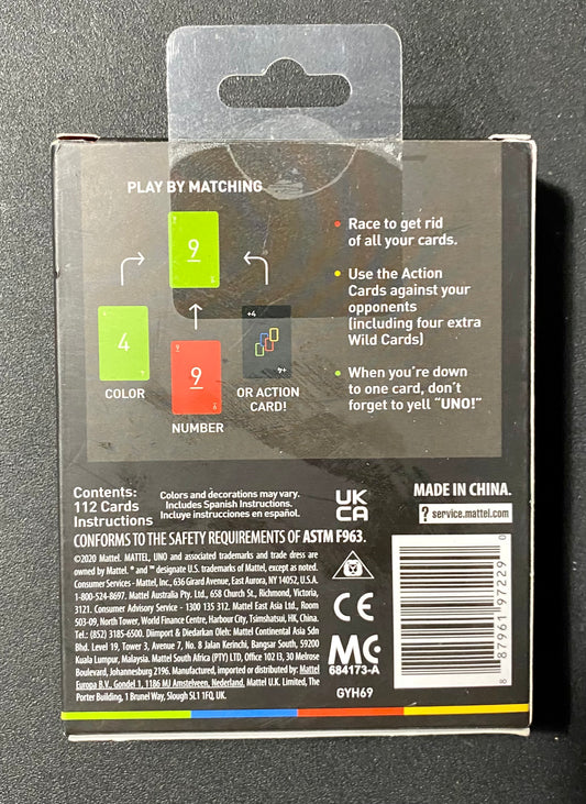 UNO Color & Number Matching Card Game 02001