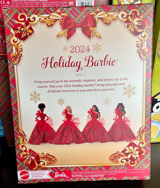 Barbie Signature 2024 Holiday Barbie Fashion Doll, Seasonal Collector Gift, Brown Hair with Plaid Gown 18107