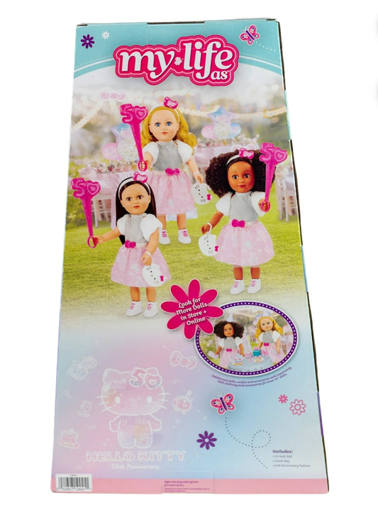 My Life As Poseable Hello Kitty 18" Doll, Dark Brunette Curly Hair, Brown Eyes, 50th Anniversary Edition 19941