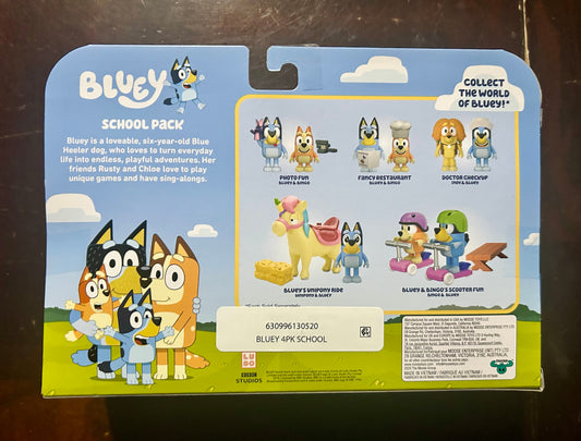 Bluey School 4-Pack Figure Set, Calypso, Bluey, Chloe, Rusty 13052