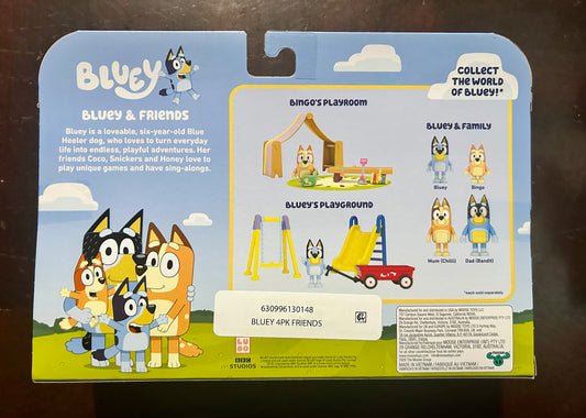 Bluey Friends 4-Pack Figure Set with Bluey, Coco, Honey, Snickers 13014