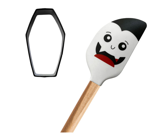 Halloween Dracula Spatula with Coordinating Stainless Coffin Cookie Cutter, 2 - Piece Set 11896