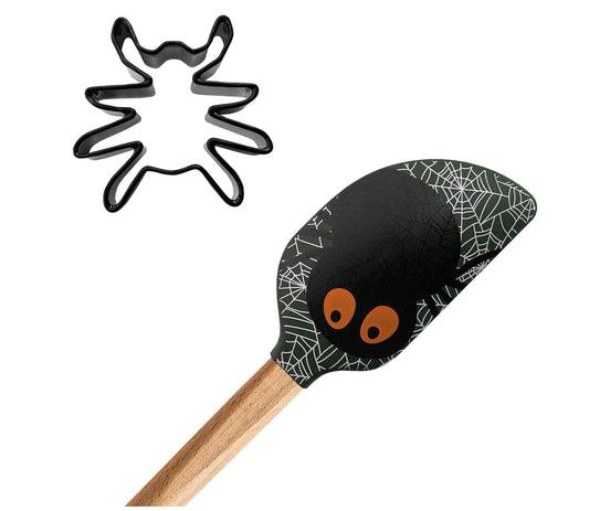 Halloween Spider Spatula with Coordinating Stainless Cookie Cutter, Spider Shape, 2 Piece 11894