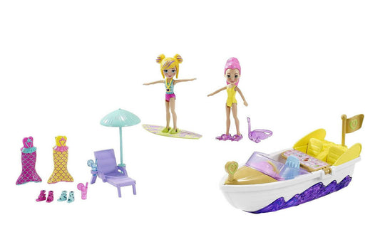 Polly Pocket Splashin’ Fun Mermaid Pack, Water Tank, Submarine, Boat, Two 3-inch Dolls