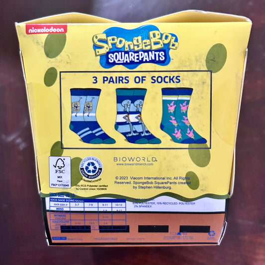 SpongeBob SquarePants Men’s 3-Pack Crew Socks Size 10-13