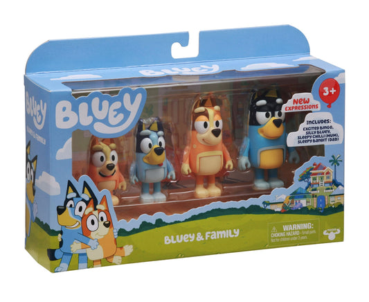 Bluey & Family Mini Figure 4-Pack (Excited Bingo, Silly Bluey, Sleepy Mum & Sleepy Dad)