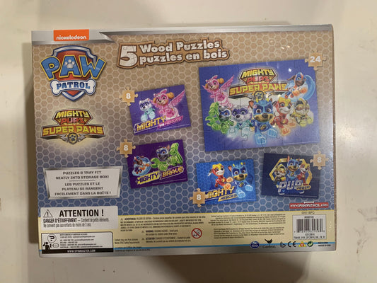 Paw Patrol Mighty Pups Super Paws 5-Pack Wooden Jigsaw Puzzle Set With Storage Box