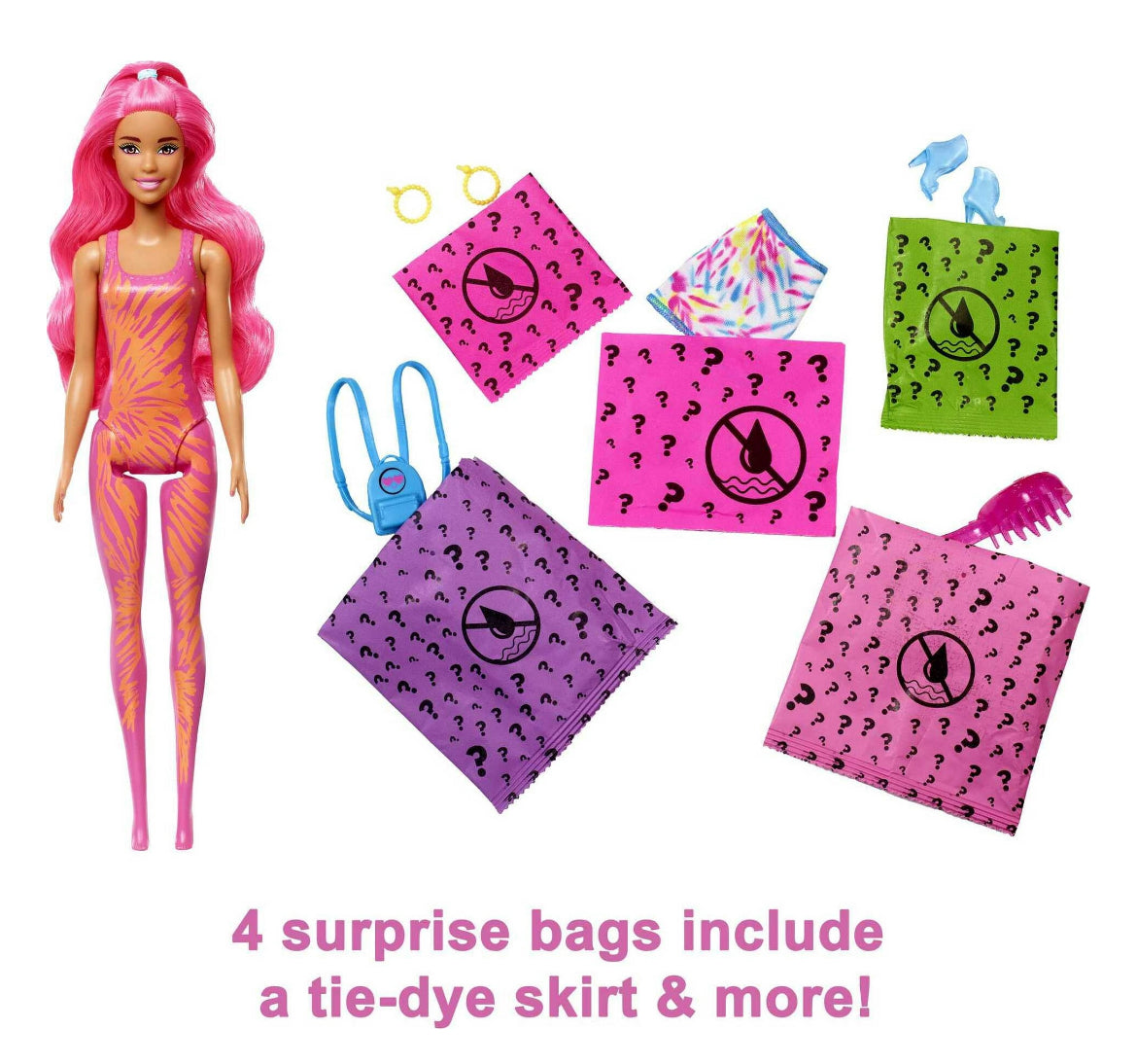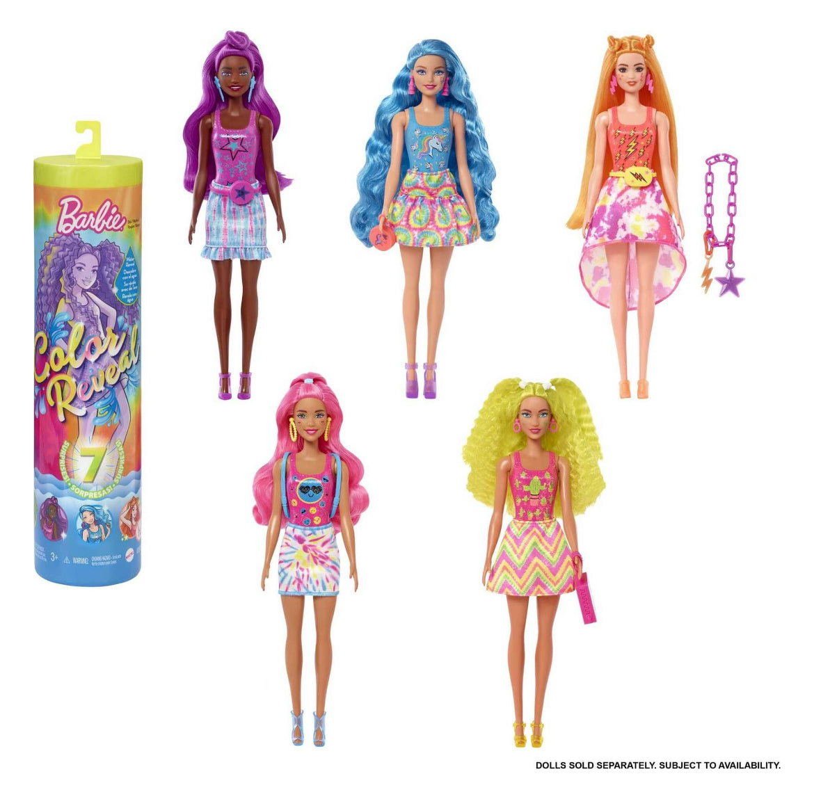 Barbie Color Reveal Neon Tie-Dye Fashion Doll with Accessories & Color Change (Styles May Vary)