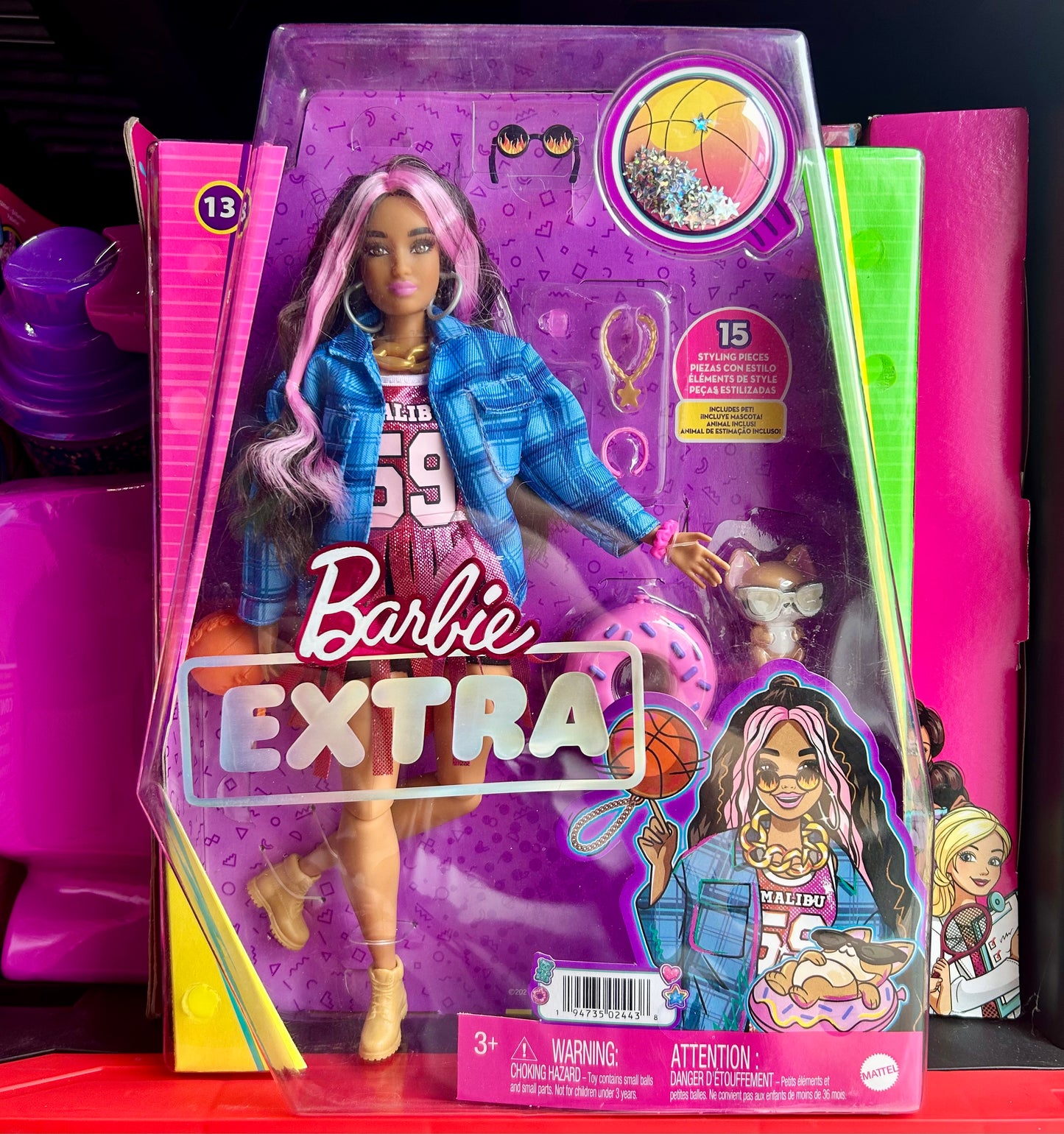 Barbie Extra Fashion Doll #13 with Pink-Streaked Crimped Hair in Jersey Dress 02443