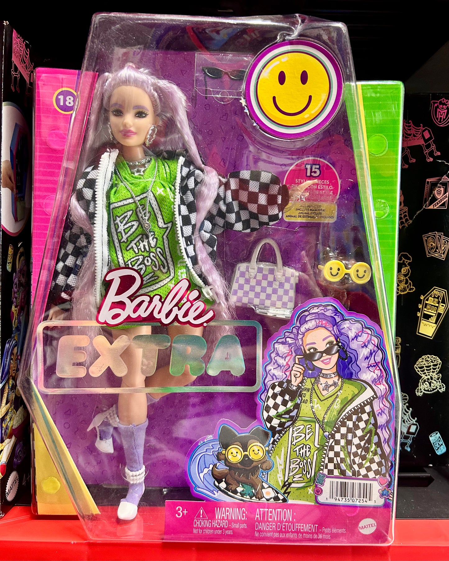 Barbie Extra Fashion Doll #18 with Lavender Hair & Brown Eyes in Checkered Jacket 07254