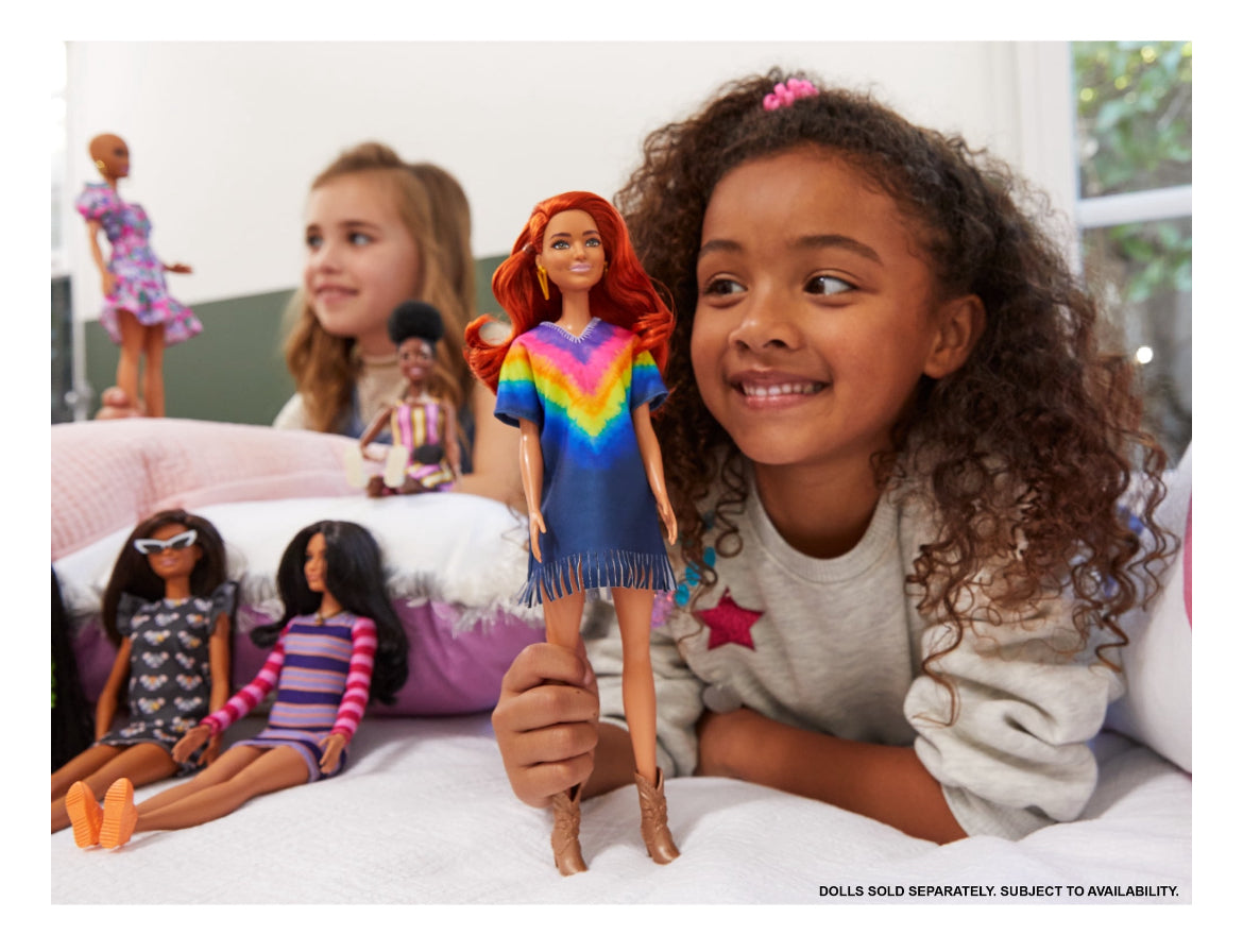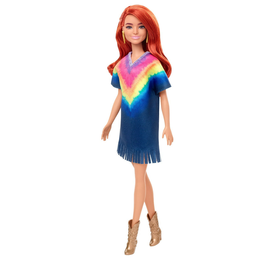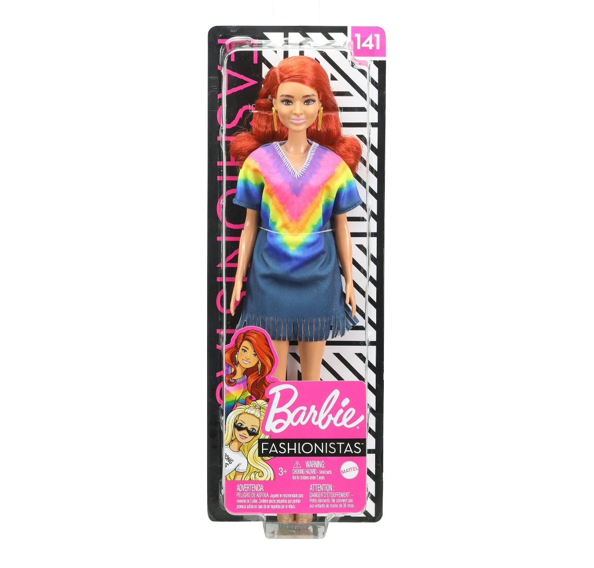 Barbie Fashionistas Doll #141 with Long Red Hair Wearing Tie-Dye Fringe Dress