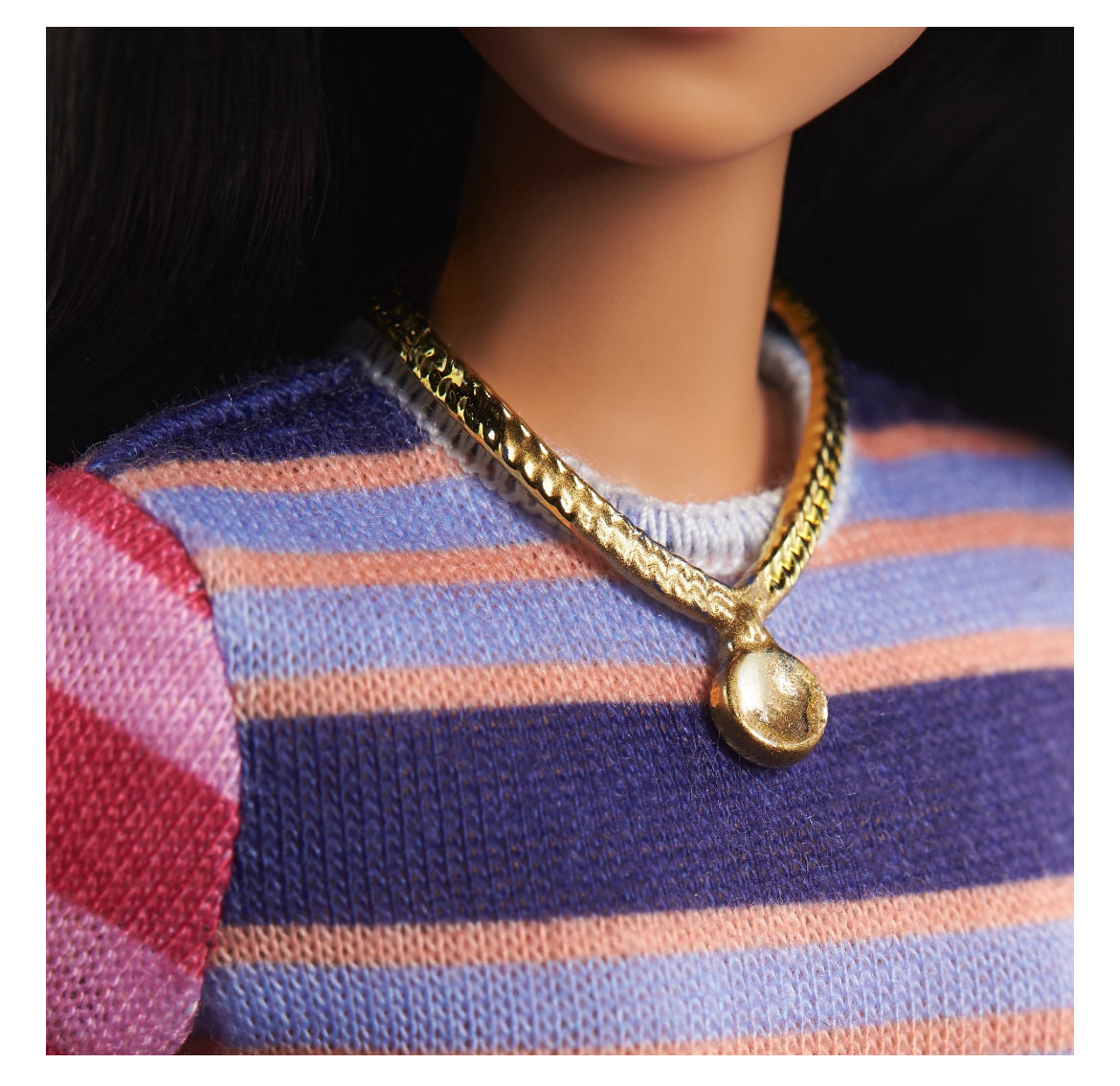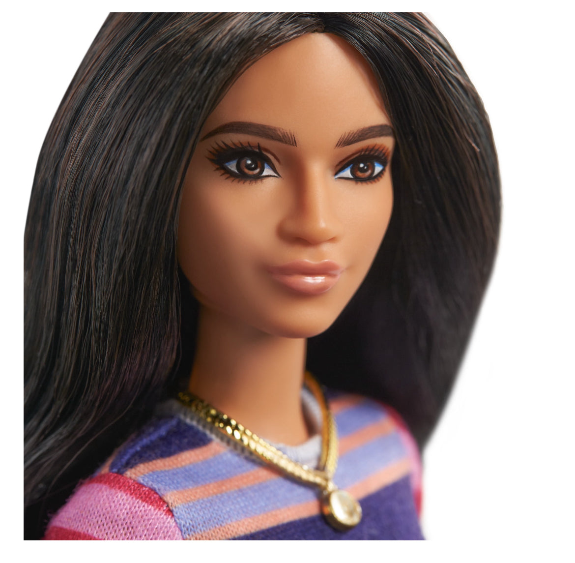 Barbie Fashionistas Doll #147 With Long Brunette Hair & Striped Dress