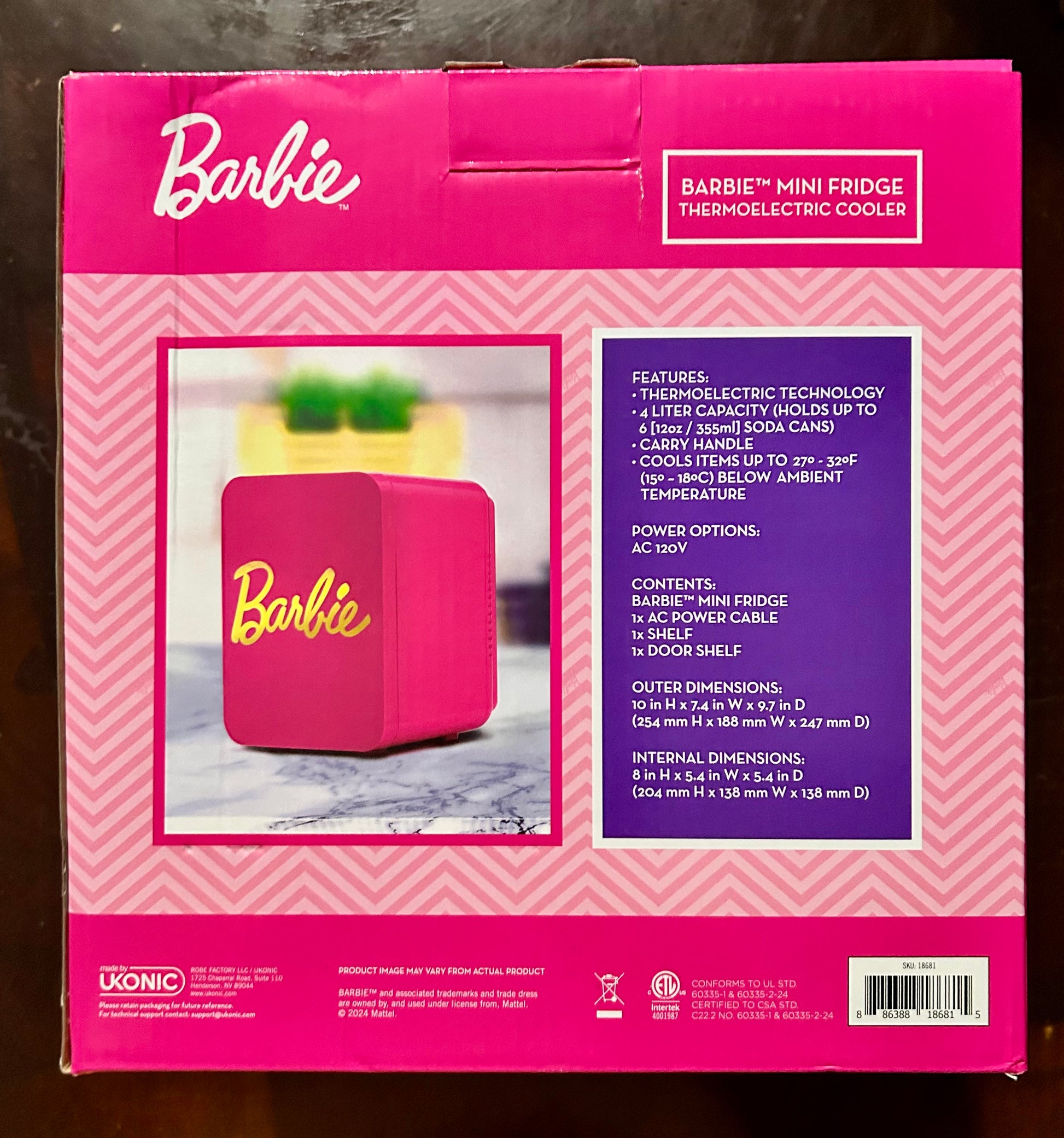 Barbie Hot Pink 6 Can Mini Fridge Thermoelectric Cooler 18681