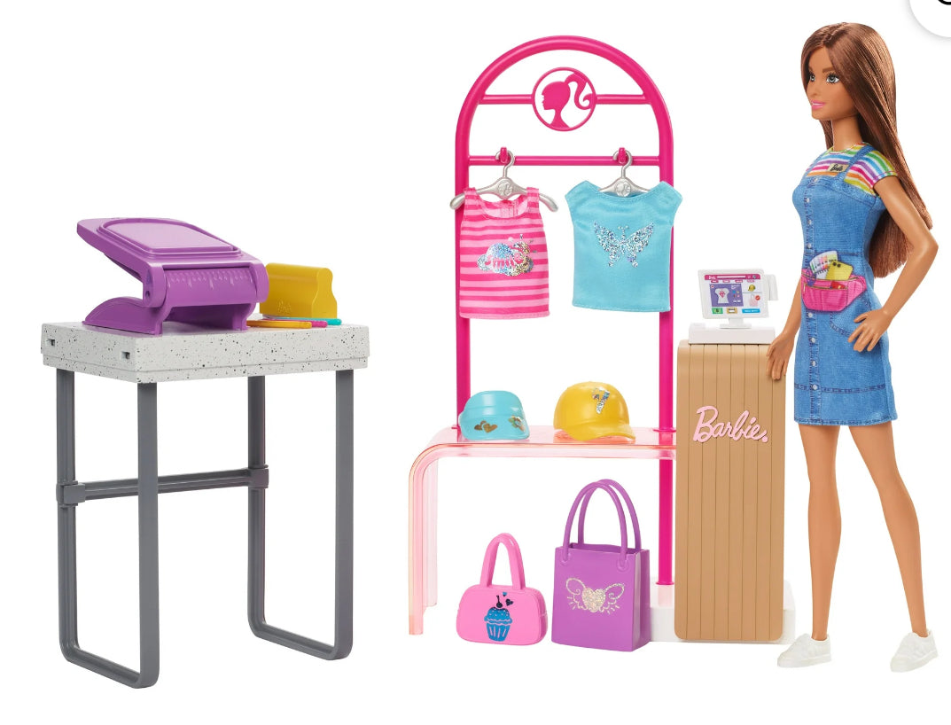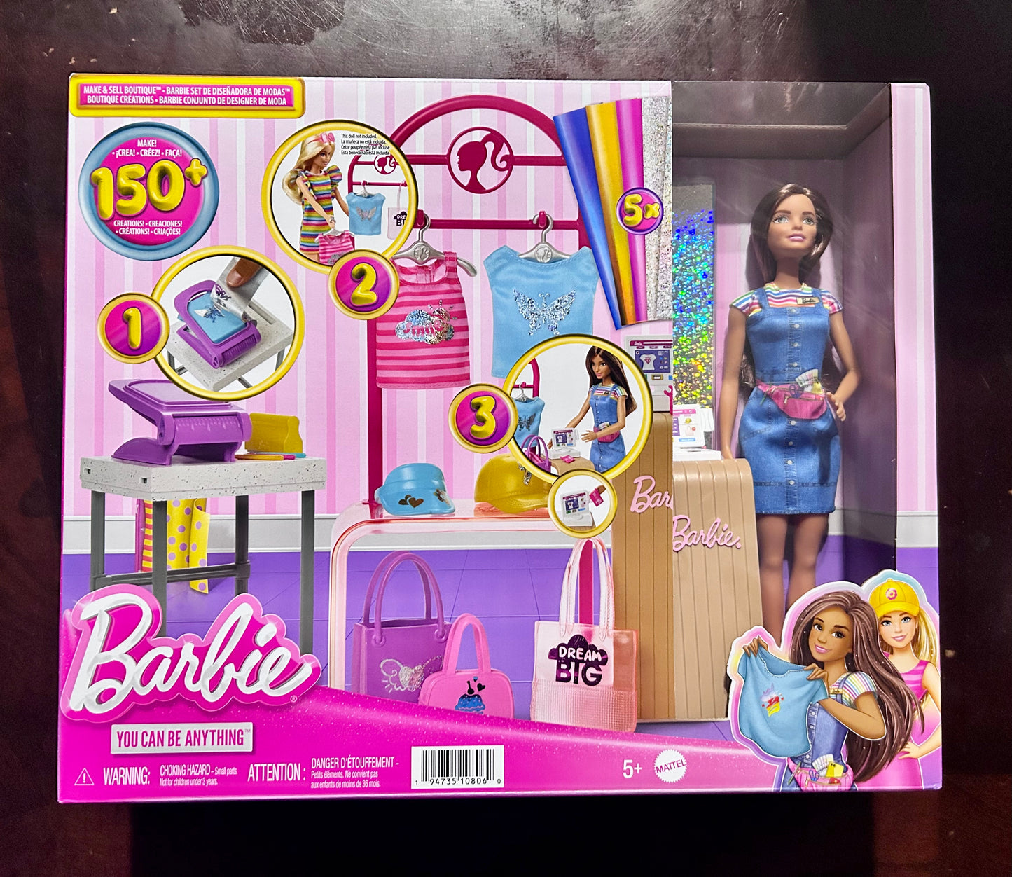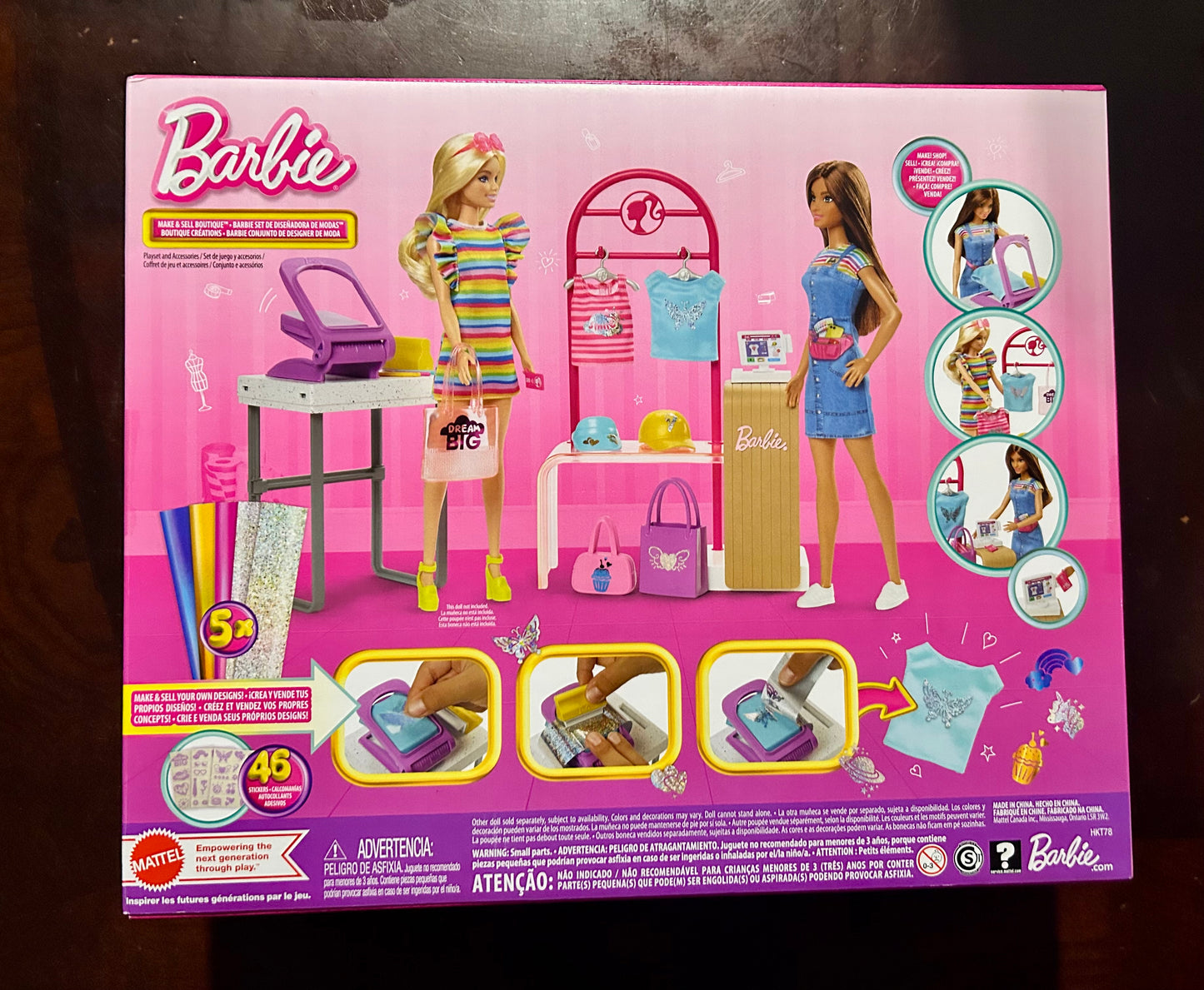 - With the Barbie Make & Sell Boutique playset, kids have everything needed to make their own foil designs for Barbie doll and create more than 150 original looks!