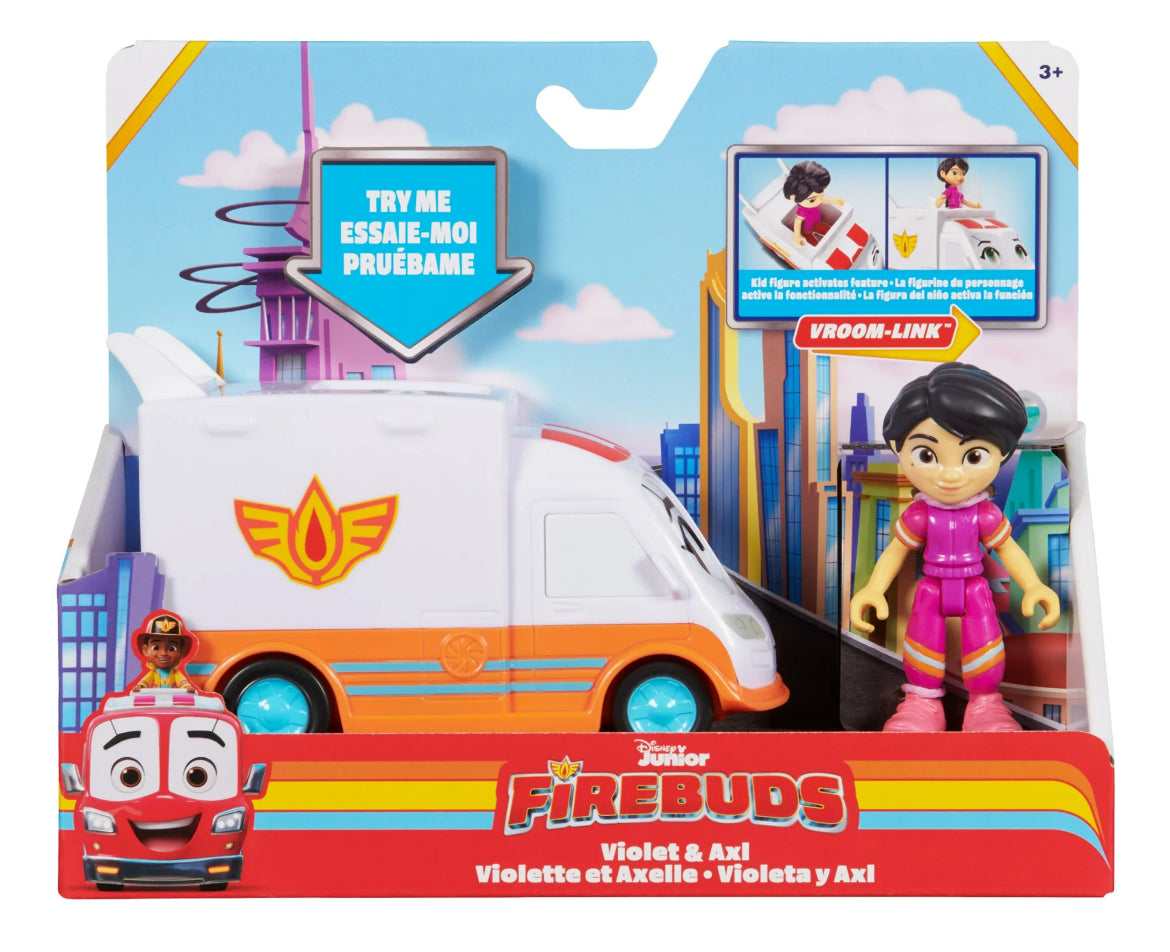 - EXCLUSIVE ACTION FIGURE: Dressed in her signature Disney Junior Firebuds EMT uniform, Violet looks just like she does in the show and can’t wait to help save the day in Motopolis!