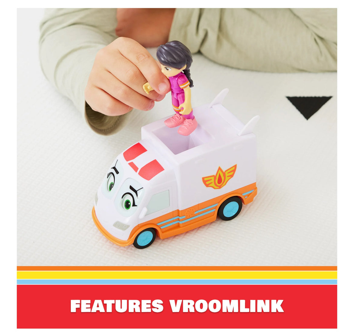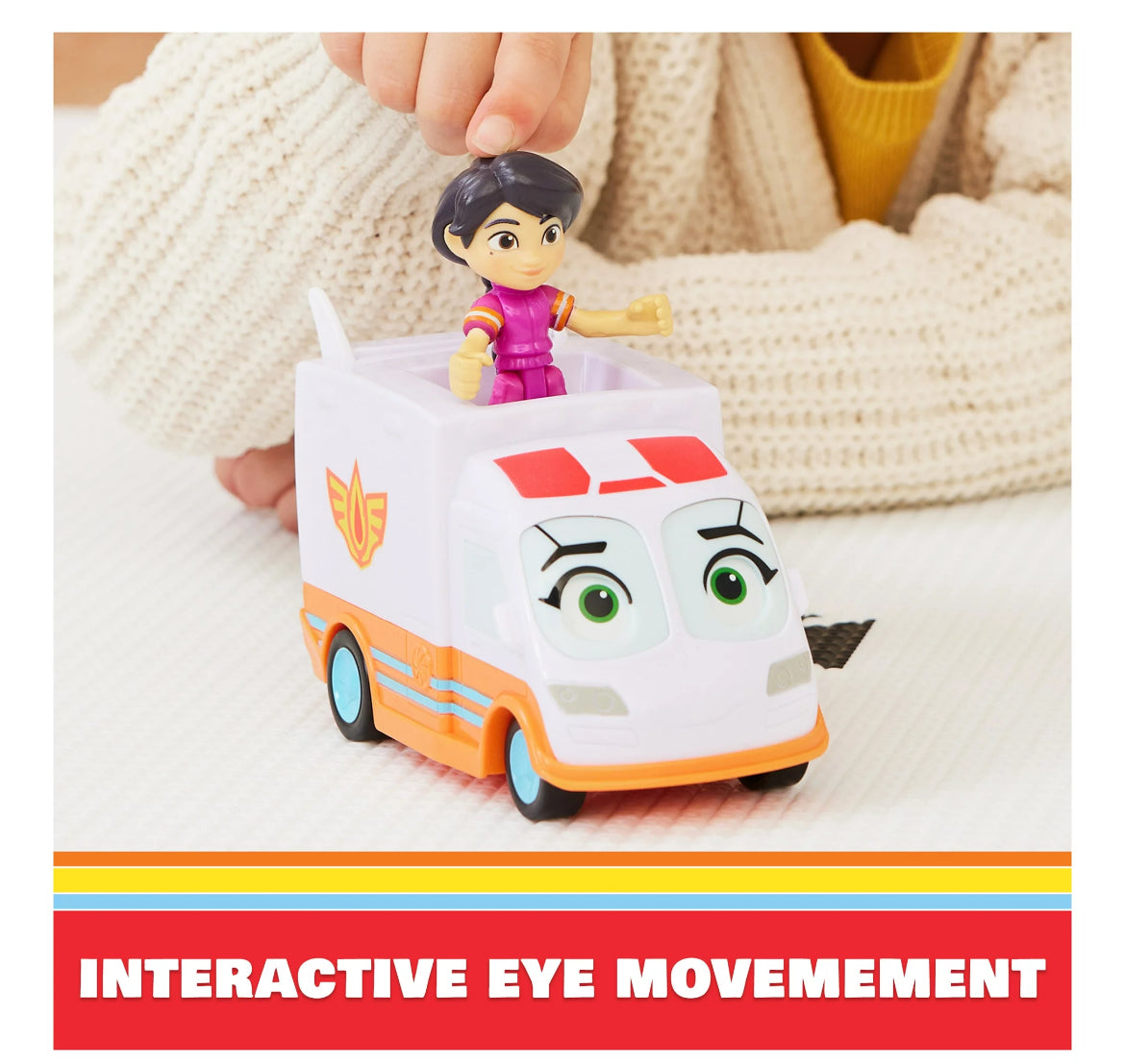 - VEHICLE EYE MOVEMENT: When it’s time for an exciting rescue, place Violet on roof top of Axl’s and push down – to activate Axl’s eye movement, as he looks up to greet his best Vroom-Mate!