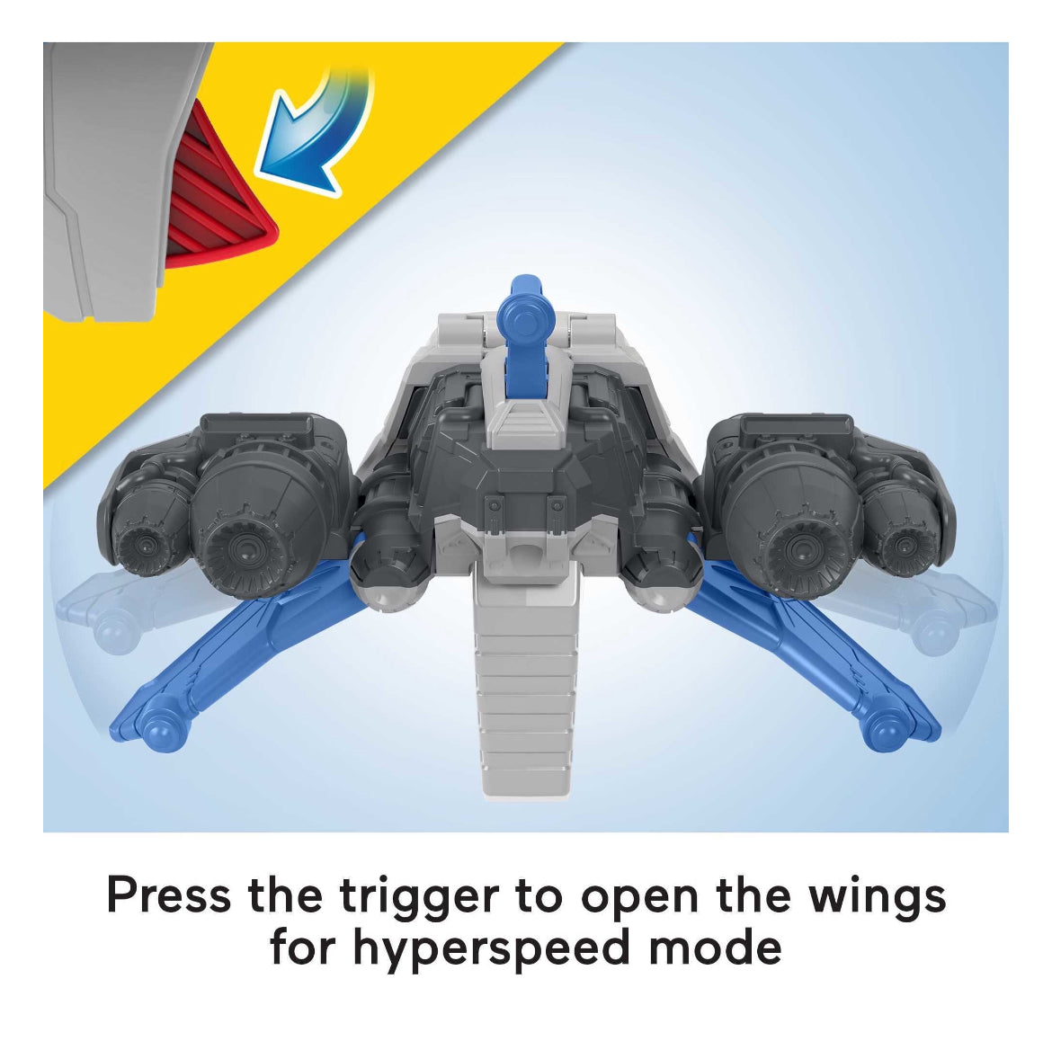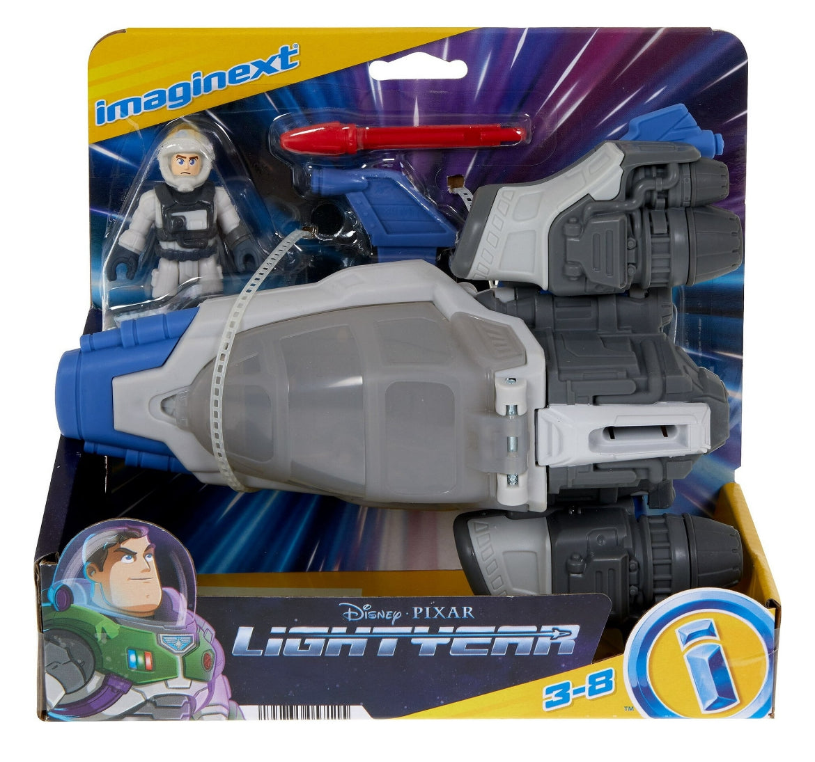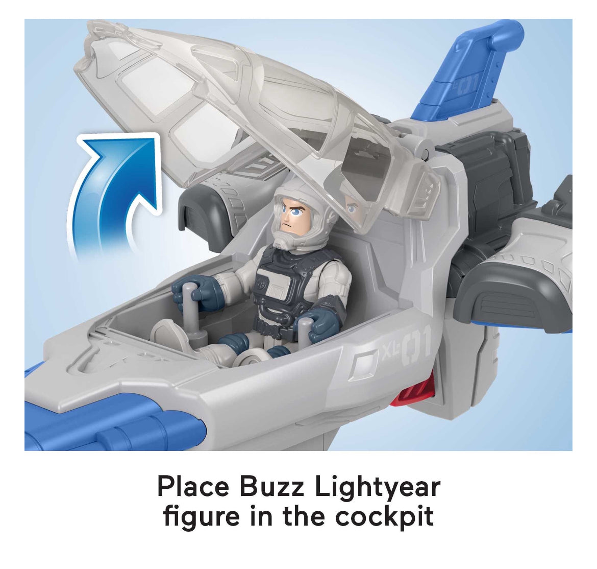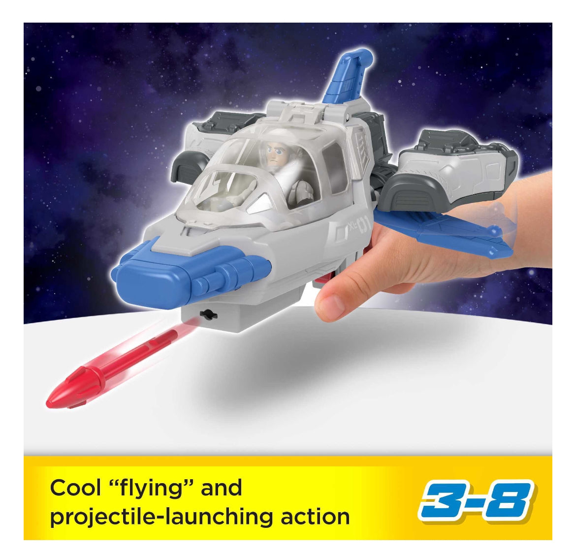 Fans can relive the exciting, intergalactic action of Disney and Pixar’s Lightyear film with this Imaginext Hyperspeed Explorer XL-01 Spaceship and Buzz Lightyear (XL-01) poseable figure from Fisher-Price. Space Rangers-in-training can place the figure inside the ship and press the trigger to reposition the engines and wings to “zoom” into hyperspeed. Styled just like Buzz’s first spaceship in the movie, this Imaginext toy aircraft also launches projectiles when kids press the trigger.