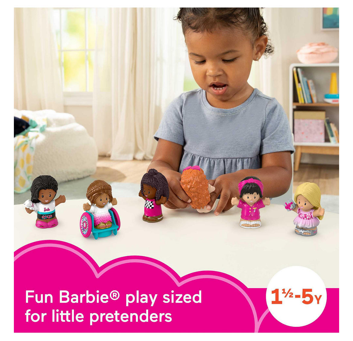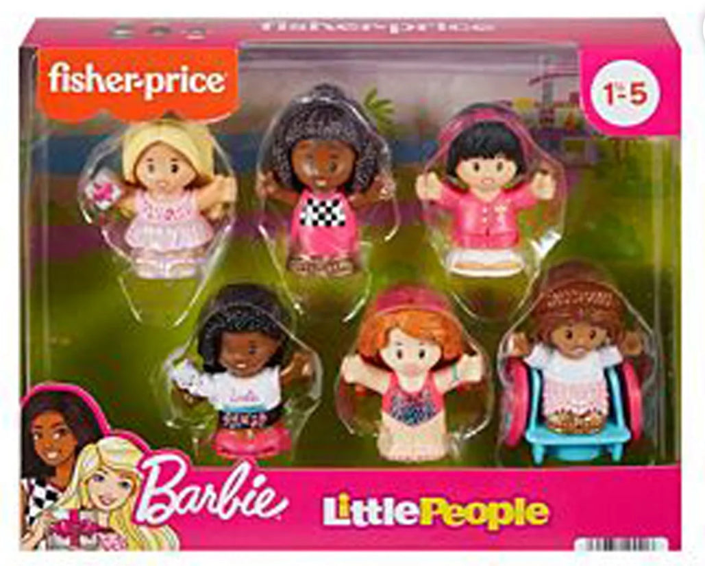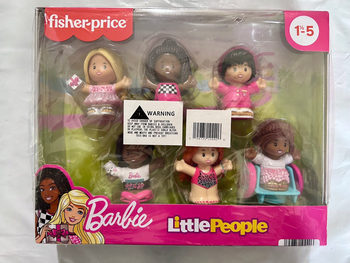 Toddlers can bring their own fun Barbie stories to life with this gift set of 6 Little People figures from Fisher-Price. Sized just right for small hands to grasp and styled in fun themes like sleepover, birthday party and summer swim fun, these adorable figures encourage little Barbie fans to imagine all kinds of exciting pretend adventures! Little People - Little things that make a big difference. Little People friends love to play and explore the great big world around them, just like real kids! By creating kid-sized versions of real-life experiences, Fisher-Price has crafted a hands-on way for kids to learn about being a caring friend, a kind neighbor, an active community member, and all the other extraordinary qualities you see shining through in your little person. Build a whole collection of Little People playsets and your kids will discover more about the world in wonderful, imaginative ways!