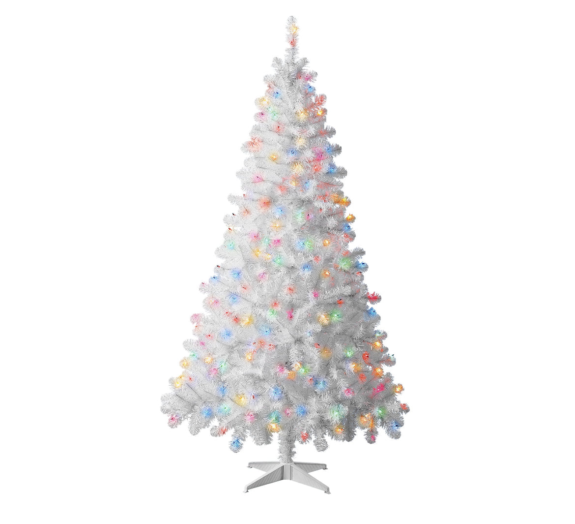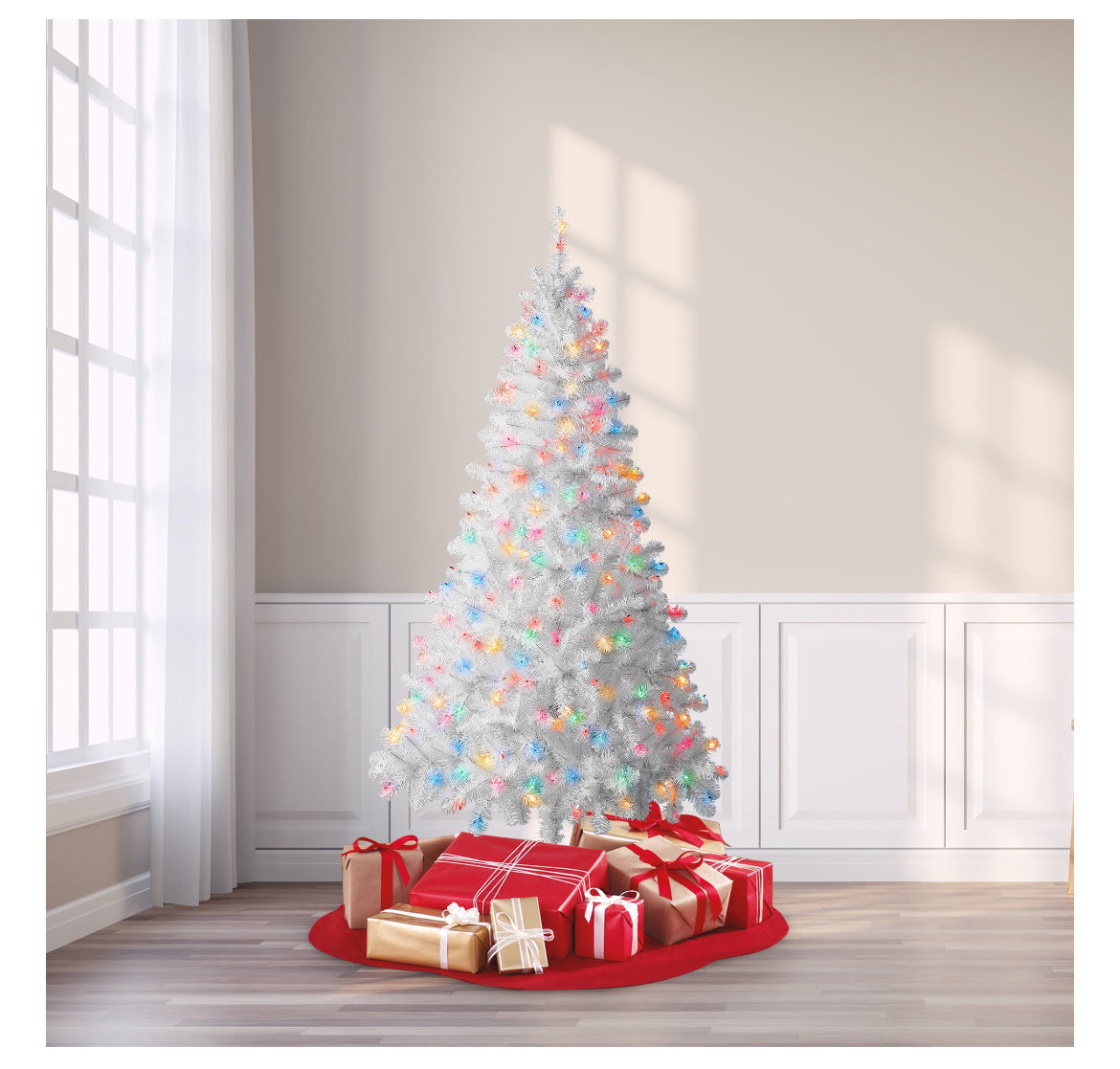 Holiday Time 6.5 Foot Pre-Lit Multi-Color Lights Madison Pine White Christmas Tree 52350