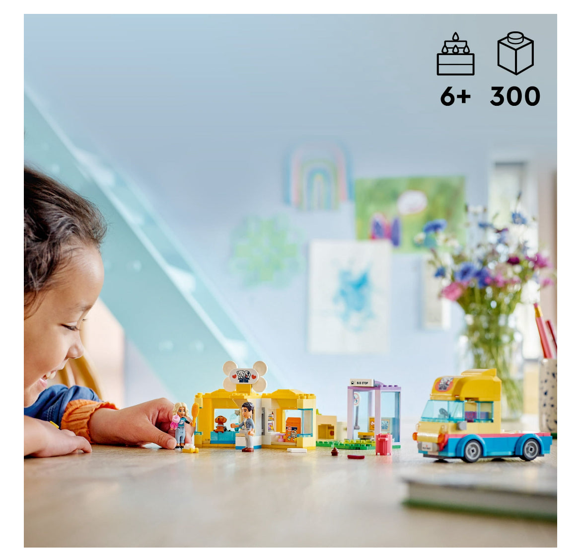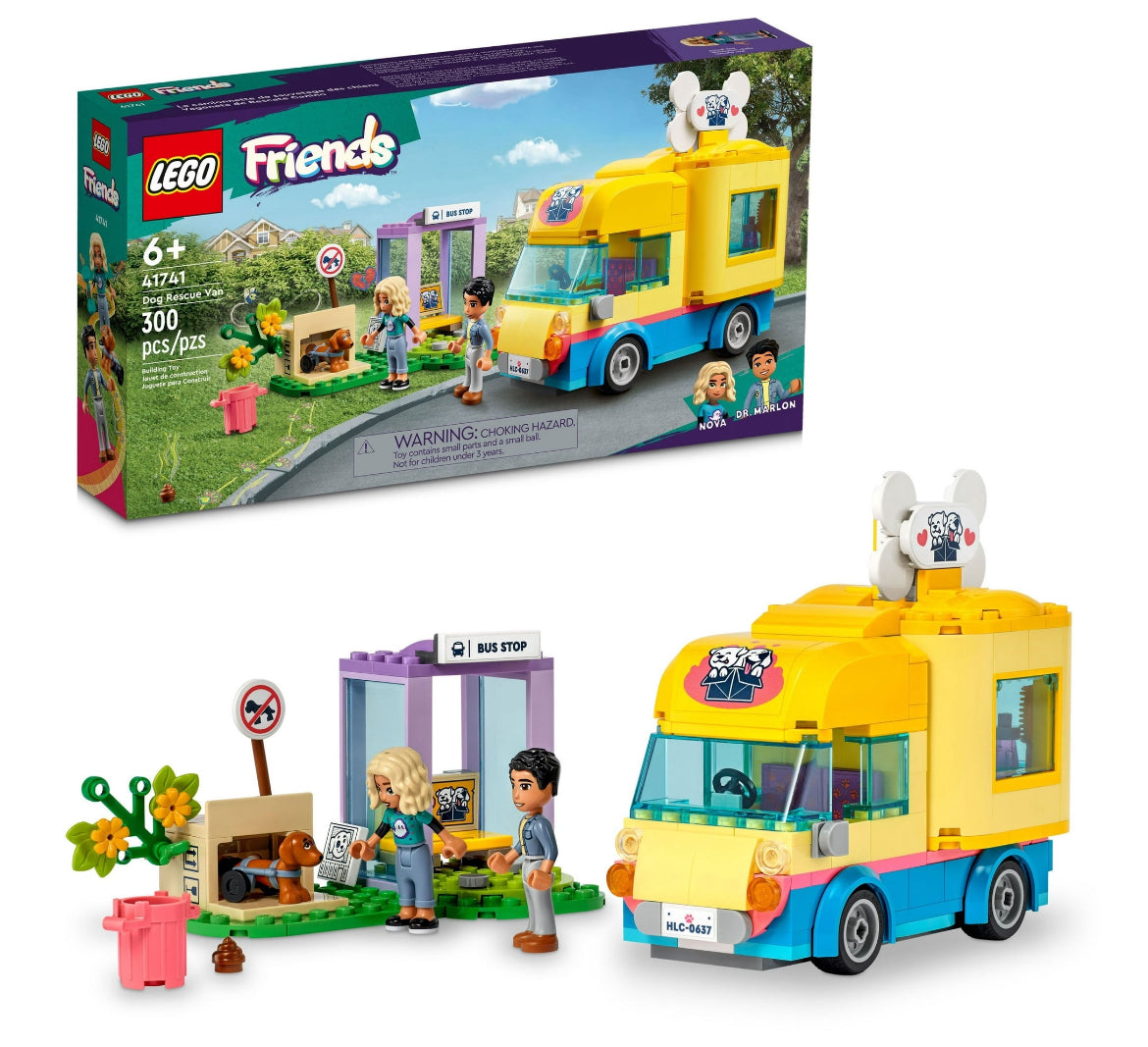 Animal lovers will enjoy rescuing and caring for this adorable pup! The LEGO Friends Dog Rescue Van (41741) building toy for kids 6+ years old is made for storytelling. This LEGO Friends puppy playset features an animal rescue toy van, plus LEGO Friends Nova and Dr Marlon mini-dolls, plus a Pickle the dog figure. The roof of the toy van lifts off to reveal the mobile rescue center where kids will find all they need to care for Pickle the dog. Accessories in this LEGO Friends animal rescue playset include a dog bath, work bench, brush, soap, rubbish bin, poo, water and food, plus wheels to help Pickle walk. Kids can make the pup’s head stick out of the cardboard box as Nova passes by and then pretend to call the rescue center. Kids will love changing Nova’s sad expression to a happy one as she cares for Pickle. The LEGO Builder app allows kids to experience an easy and intuitive building adventure. Here kids can zoom in and rotate models in 3D, save sets and track progress. Kids make friends and discover exciting locations in the LEGO Friends universe, where they can enjoy creative play and act out real-life adventures with the next generation of Heartlake City. This LEGO Friends animal rescue toy van makes a fun birthday or any-other-day gift for kids Ages 6 and over who love imaginative play with LEGO Friends and cute animals. The toy van measures over 4.5 in. (11 cm) high, 5 in. (12 cm) long and 2.5 in. (6 cm) wide. Contains 300 Pieces.