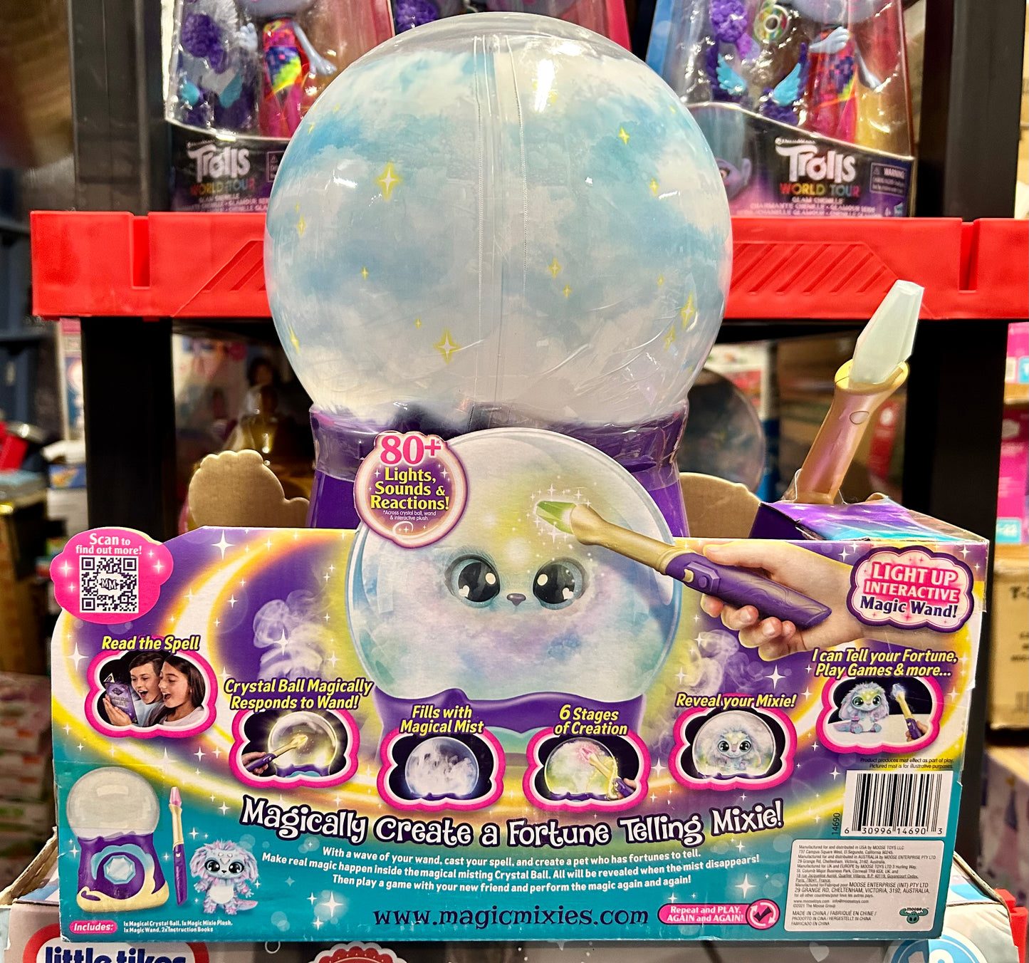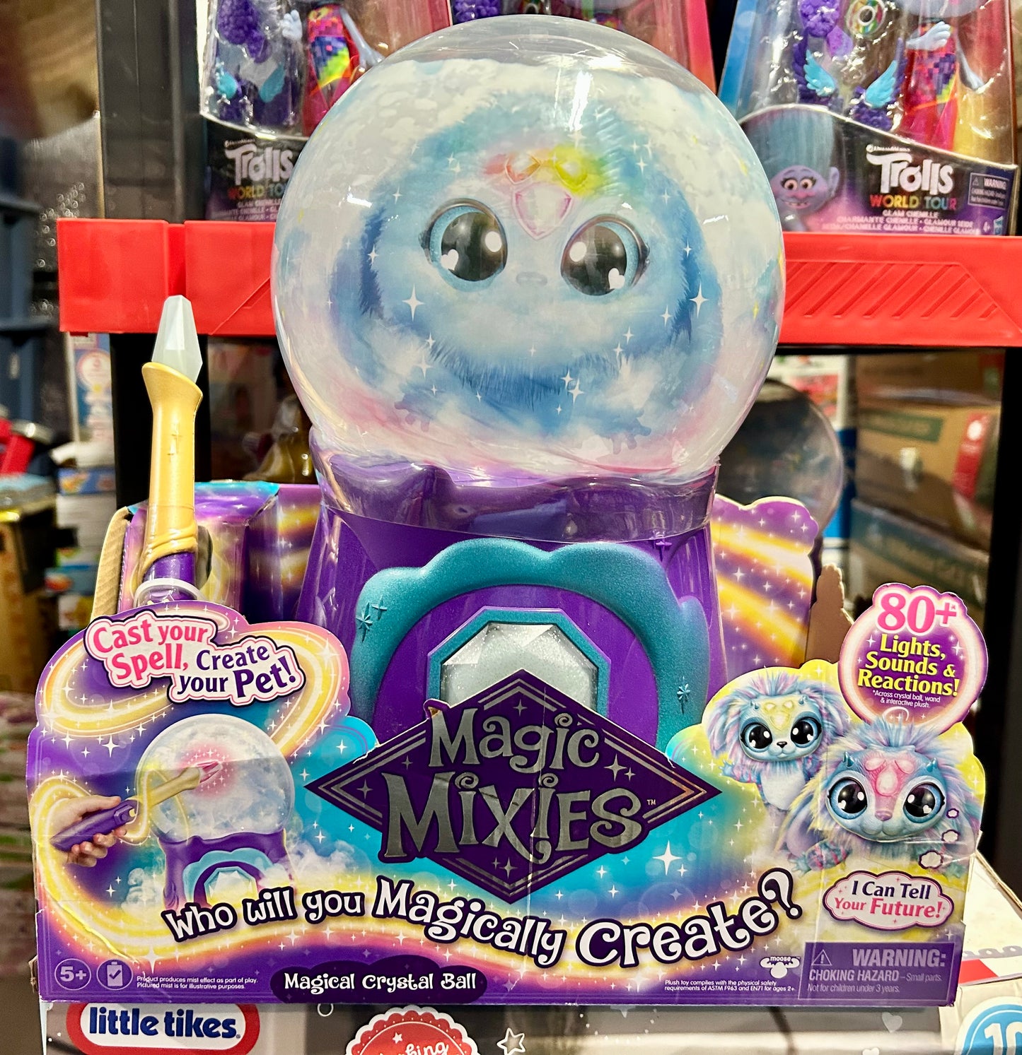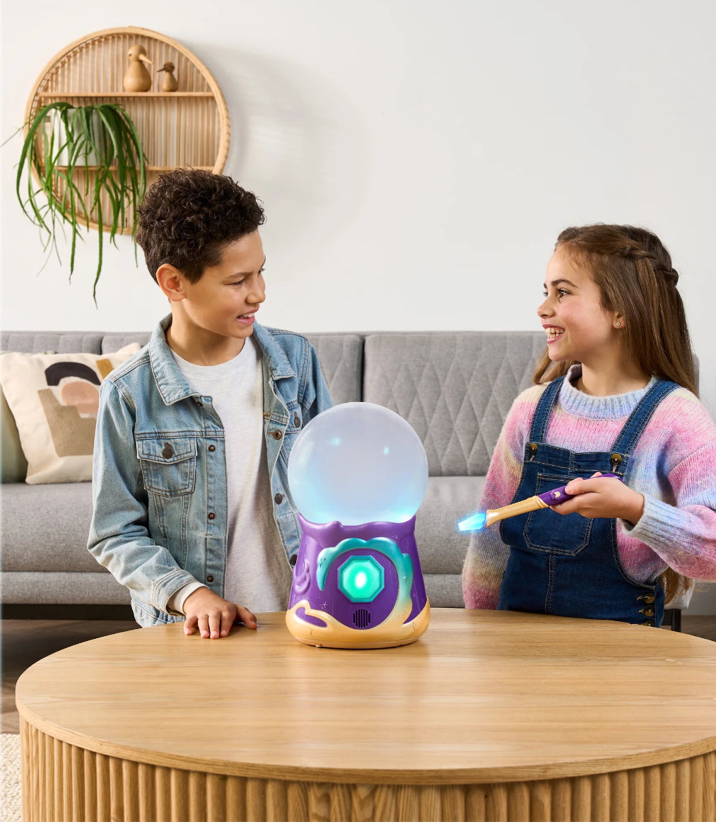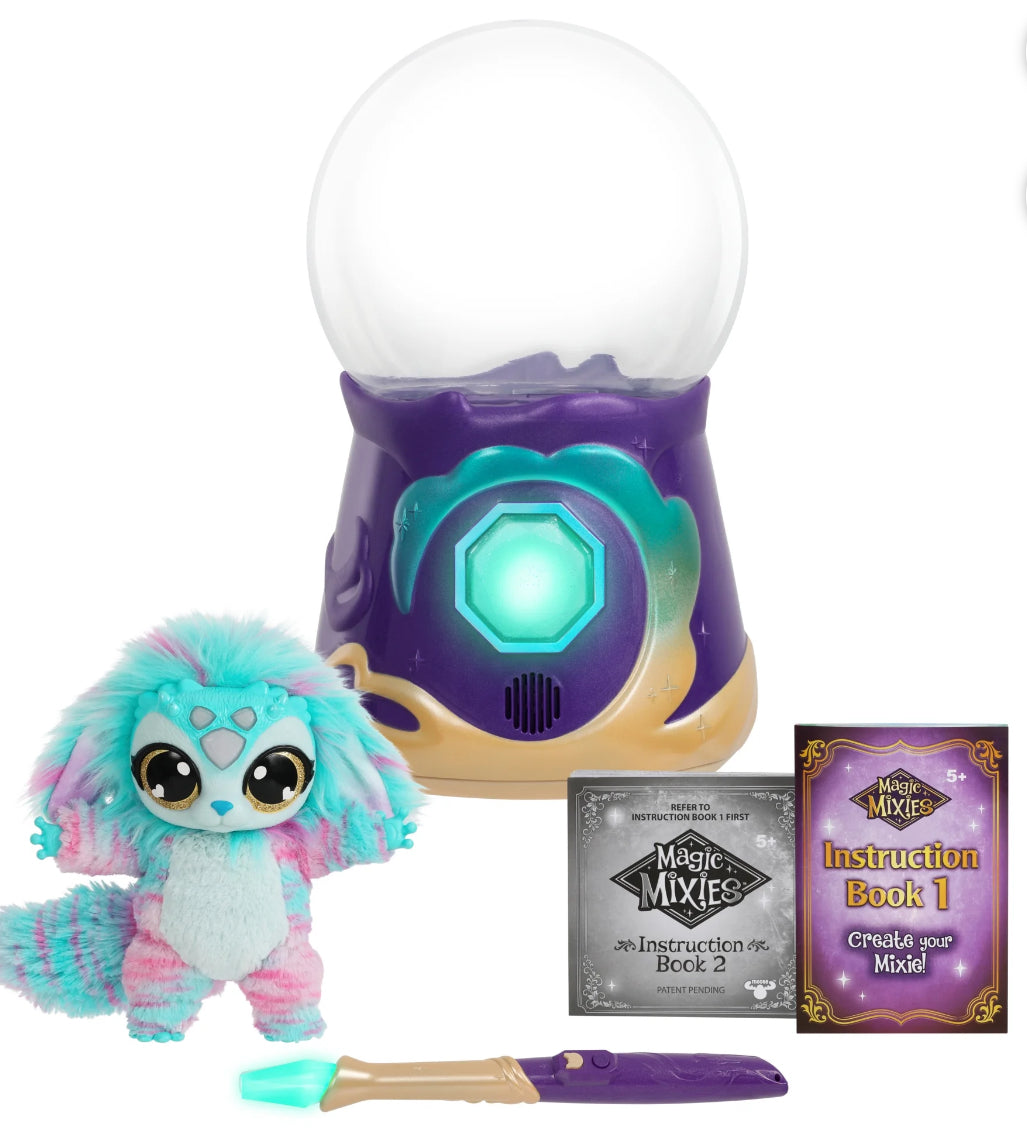 Real Magic Returns when you cast your spell and create a fortune telling pet inside the Magic Mixies Magical Crystal Ball! From the makers of the Magic Mixie Magic Cauldron, it's now time to work on your spell-casting skills and make Real Magic happen inside this feature packed magical misting Crystal Ball! Create your very own fortune-telling Magic Mixie by performing the Creation Spell using your light-up interactive magic wand. Be amazed as your Crystal Ball magically responds to your wand's movements! For each step of the Creation Spell, you will need to master the correct wand movement and say the magic word for that step. First, awaken the Crystal Ball, then summon real magical mist before giving your Magic Mixie its voice and color! Then teach it how to tell fortunes before saying the magical words ‘MAGICUS MIXUS’ and bringing your Mixie to life! Watch as colorful lights and sounds move and change while the magic happens inside…then, as the mist clears your Magic Mixie magically appears! Remove the top of the Crystal Ball to release your cute new interactive plush toy pet! The magic and fun has only just begun, once your remove your new pet from the Crystal Ball, use your magic wand to interact with your Magic Mixie. Perform different spells, play an interactive fun game together and have your fortune told by your cute little creation! Tickle and nurture your Mixie and hear them react as you build a magical friendship together. Your Magic Mixies Crystal Ball can be reset so you can perform the mist-filled reveal inside your Crystal Ball again and again using your Magic Mixie or other items from home! A Magical Mist Refill Pack for your Crystal Ball is available and sold separately so you can keep the magic alive! The Crystal Ball can also be used as a Night-Light for a magical bed time each night. Real Magic is just waiting to be revealed. Who will you magically create?