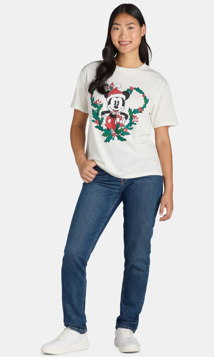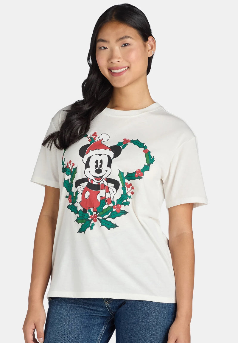 Mickey Mouse Women's Christmas Graphic Tee with Short Sleeves