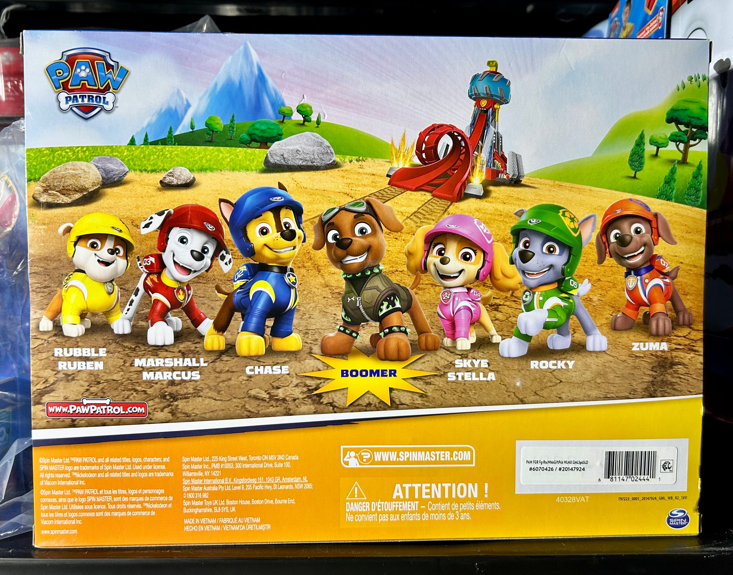 Create your own PAW Patrol: Rescue Wheels adventures with the PAW Patrol Collectible Figure Gift Pack! This PAW Patrol toy figures set includes Chase, Ryder, Marshall, Rocky, Rubble, Zuma, Skye and the newest pup, Boomer! Each figure looks just like they do in the show, dressed in their authentic Rescue Wheels uniform. PAW Patrol toys for boys & girls are great gifts for kids who are fans of the show, to foster imaginative pretend play and enhance fine motor skills. Relive cherished moments from PAW Patrol seasons, such as the Mighty Pups and the PAW Patrol Movie or create entirely new adventures with individual PAW Patrol pups and their respective toy cars (each sold separately). Elevate the excitement with the complete Rescue Wheels team, including PAW Patrol vehicles, action figures and the all-new PAW Patrol Tower HQ for endless hours of turbo-charged adventures inspired by the series!