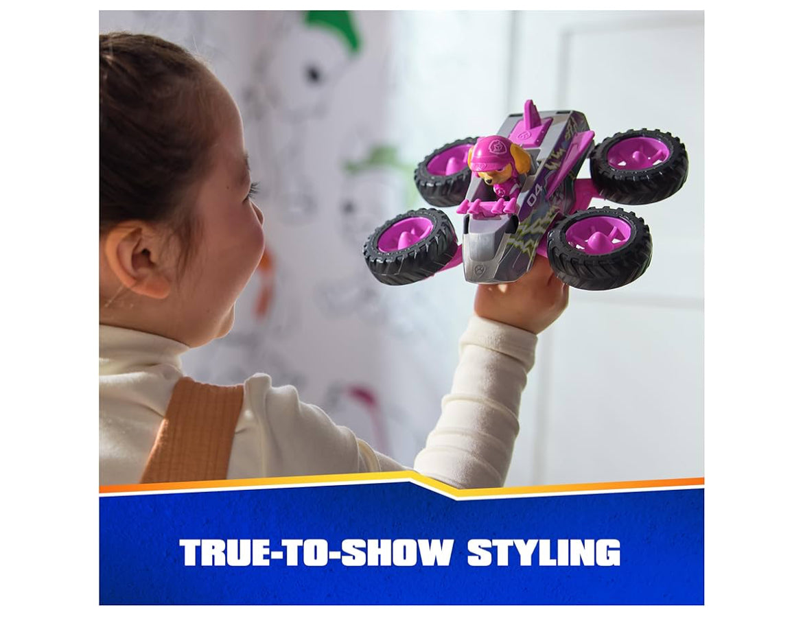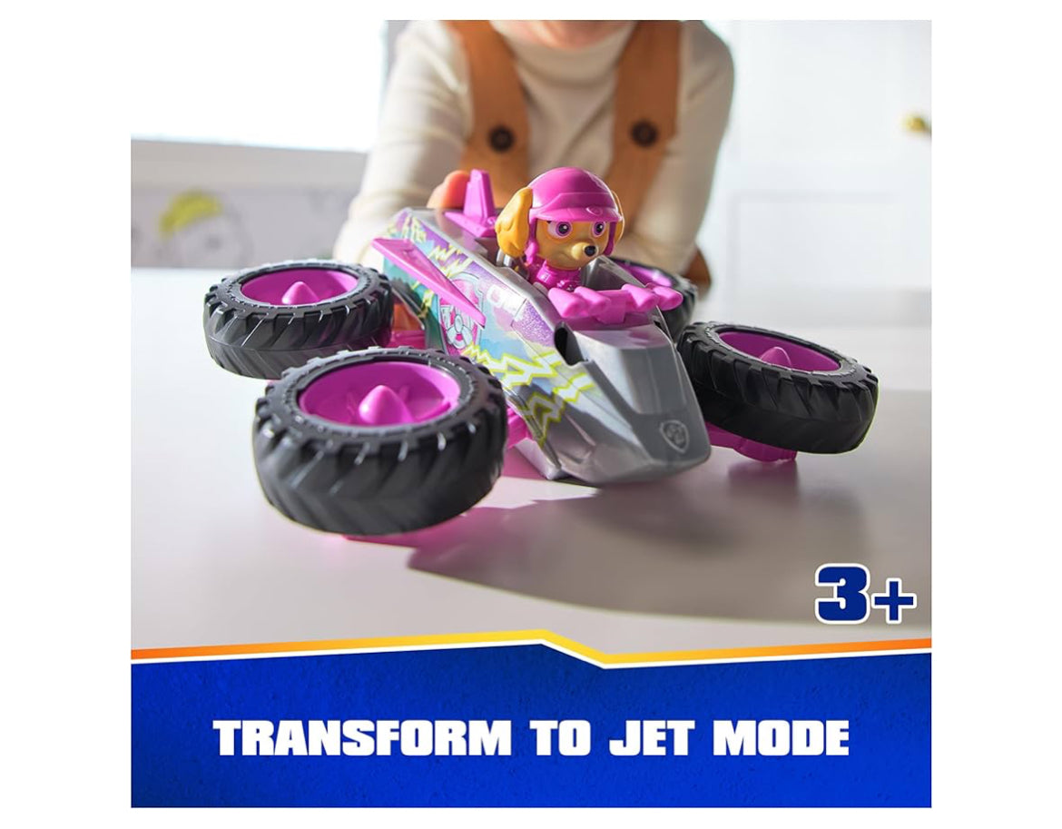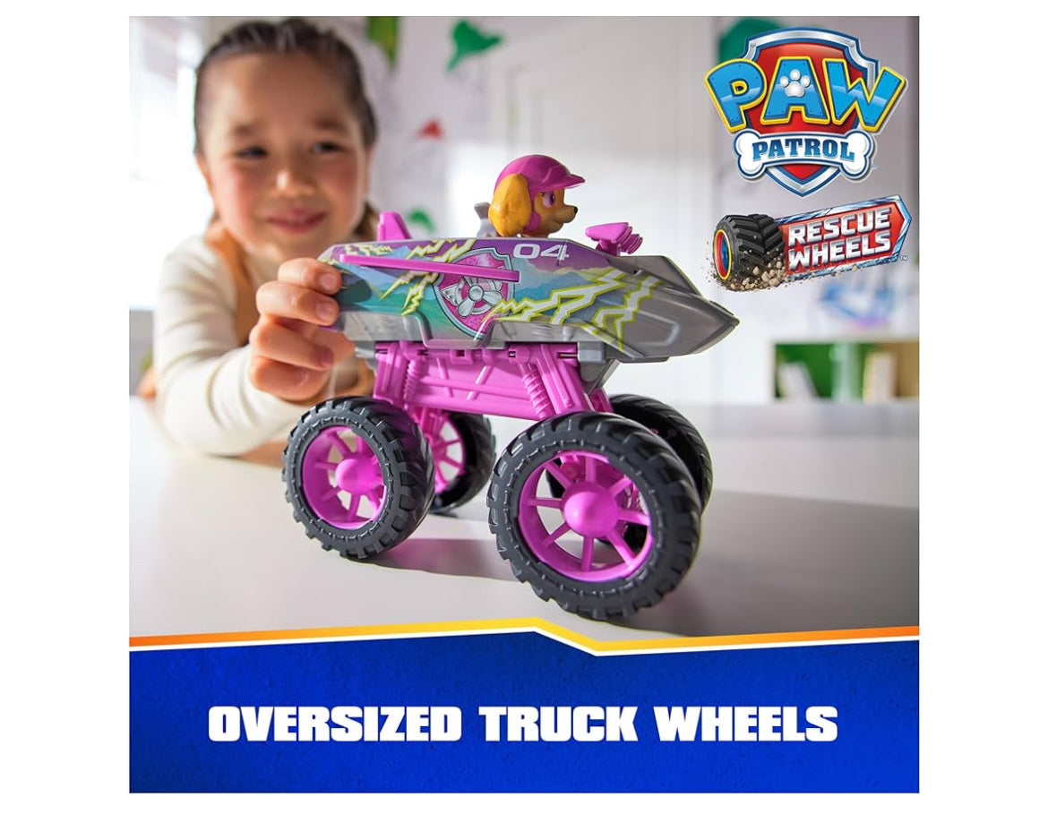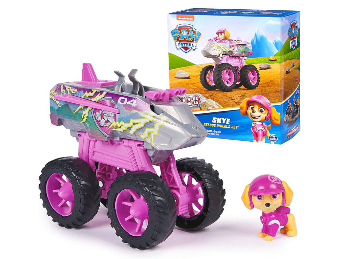 Explore thrilling rescue missions with Skye and her Rescue Wheels Jet! Skye’s monster truck features oversized wheels, with authentic PAW Patrol design and styling, so it looks just like the vehicle from the show! Push the tail fin on her truck to pop out the wheels into propeller jet mode, before flying off to save the day! PAW Patrol toys for boys & girls are great gifts for kids who are fans of the show, to foster imaginative pretend play and enhance fine motor skills. Relive cherished moments from PAW Patrol seasons, such as the Mighty Pups and the PAW Patrol Movie or create entirely new adventures with individual PAW Patrol pups and their respective toy cars (each sold separately). Elevate the excitement with the complete Rescue Wheels team, including PAW Patrol vehicles, action figures and the all-new PAW Patrol Tower HQ for endless hours of turbo-charged adventures inspired by the series!