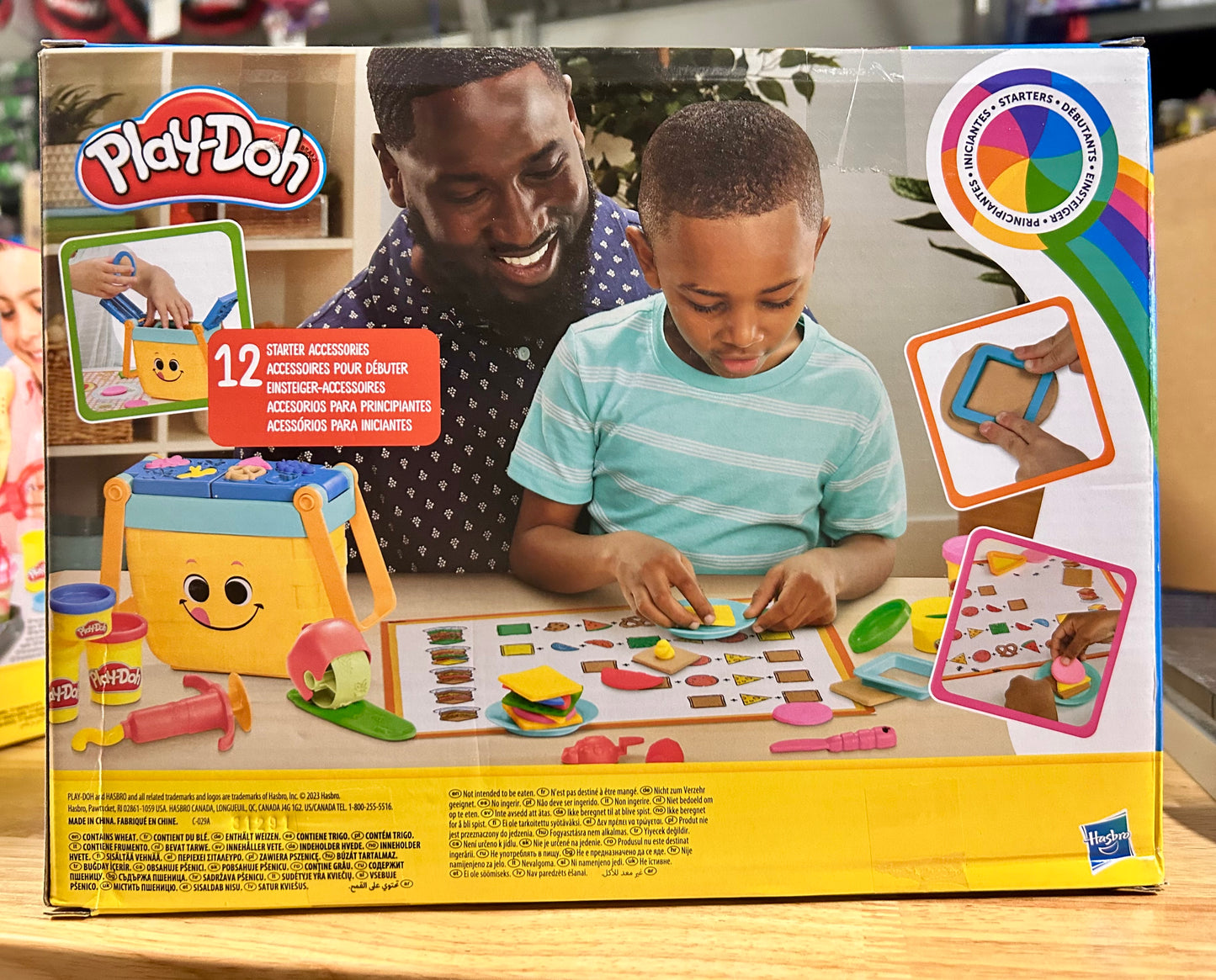 Rain or shine, the Picnic Shapes Starter Set is a perfect kids picnic set for anytime! It comes with 12 starter tools, 6 Play-Doh colors, and a toy picnic basket that stores the tools. As kids explore basic shapes like squares, circles, and triangles, they can use their imaginations and stack those shapes into Play-Doh sandwiches. Imagine pretend picnic stories with silly snacks and bugs on the picnic blanket side of the playmat or flip it around for fun shapes sequencing activities for kids. Whether it's their first Play-Doh starter set or a gift for 3 year olds and up, let them discover the joy of Play-Doh toys!