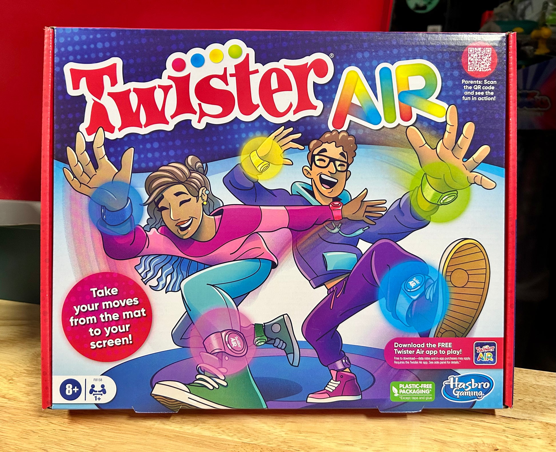 Take moves from the mat to the screen with the Twister Air game! No mat? That's right! In this app-enabled Twister game, the party moves onto a player's smart device. This fun party game includes 8 colorful, one-size-fits-all Twister Air bands and a device stand that works for any smartphone or tablet. To get started, download the Twister Air app (free to download—data rates and in-app purchase may apply) and set a smart device in the included stand. Then players put the bands on their wrists and ankles, and they're ready for action! As the music plays, players move their body to match their bands to the colored spots on screen. Reach, swipe, clap, and strike crazy poses. The more spots hit, the higher the score. Earn the most points to win! Or play solo and try to beat a personal best. This Twister Air augmented reality app game is an exciting kids party game for game nights. It's also a great holiday gift for families and kids ages 8 and up.